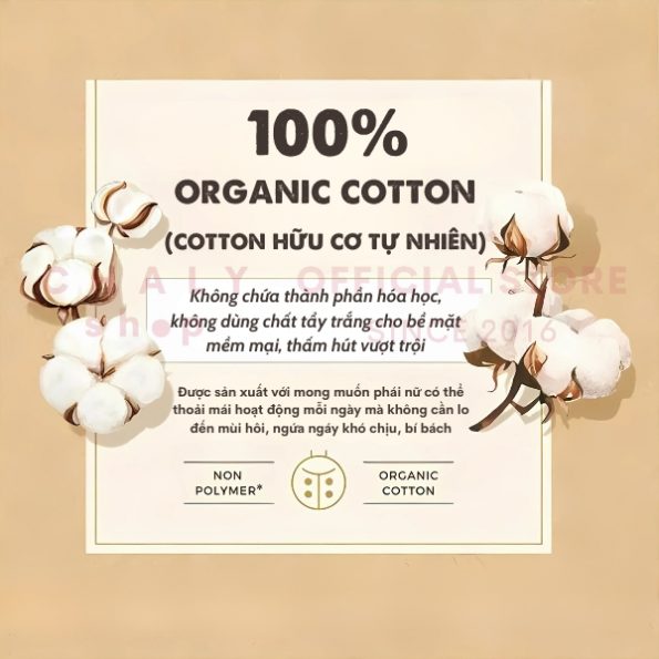 – Sử dụng 100% bông cotton hữu cơ tự nhiên