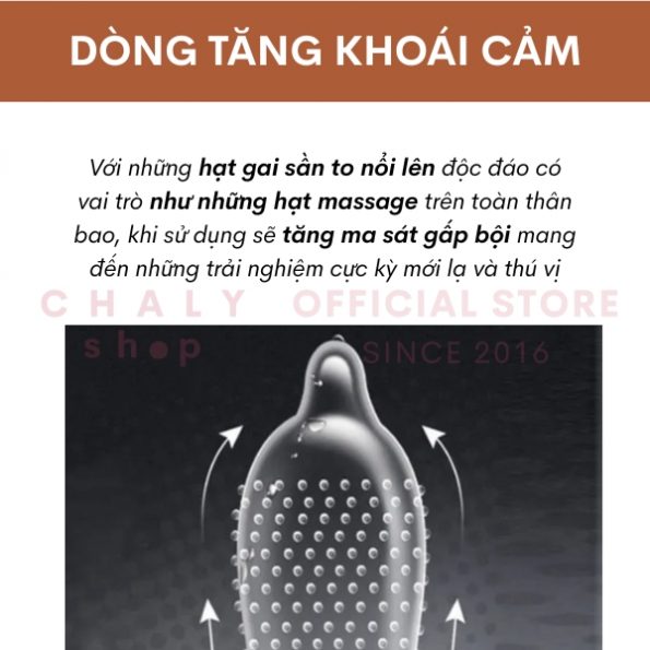 – Với những hạt gai sần to nổi lên độc đáo có vai trò như những hạt massage trên toàn thân bao, khi sử dụng sẽ tăng ma sát gấp bội mang đến những trải nghiệm cực kỳ mới lạ và thú vị