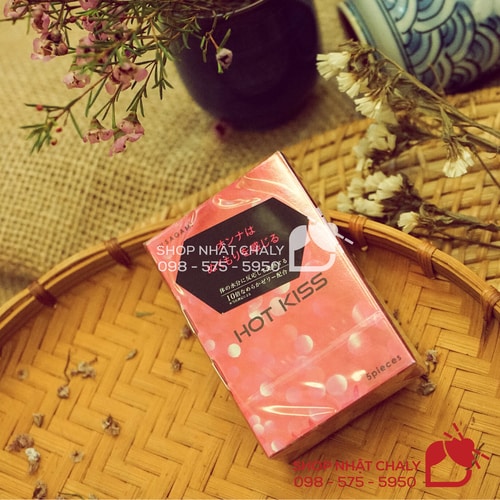 Bao cao su Hot Kiss Nhật Bản hộp 5 chiếc là bao cao su Made in Japan nguyên liệu 100% Latex Nhật, lành tính cho da và an toàn khi sử dụng cho cả người nam và nữ