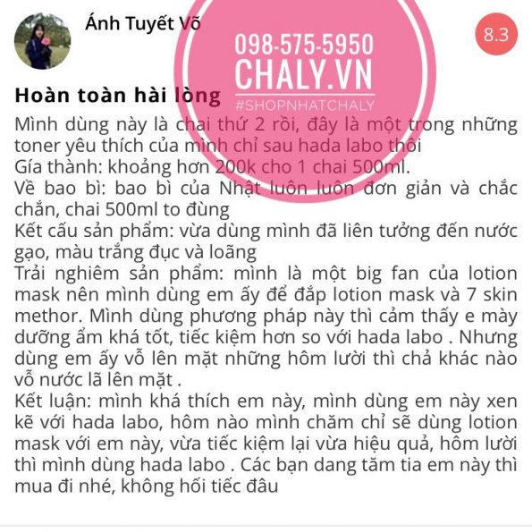 Trước đây mình không quan tâm đến lotion lắm. Nhưng khi được khai sáng sản phẩm này, lotion trở thành một bước không thể thiếu trong quy trình skincare của mình.