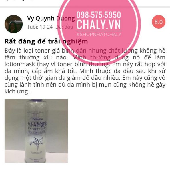 – Chi tiết về toner Naturie ý dĩ của Nhật có thể xem kĩ hơn ở trang sản phẩm