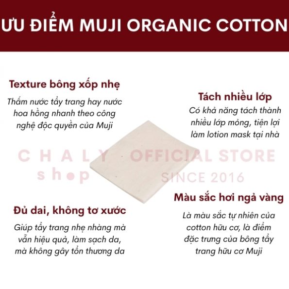 - 2 Công dụng của bông tẩy trang Muji organic cotton hữu cơ của Nhật