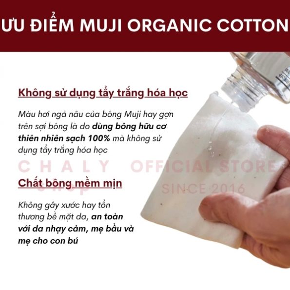 – Bông Muji tại Shop Nhật Chaly là mẫu mới nhất hiện hành tại Nhật, date xa để khách hàng yên tâm sử dụng