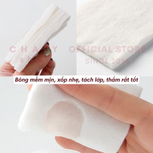 Dùng em này không tốn nhiều lotion, bông lại dai nên không bị rách hay để lại xơ trên mặt nhưng vẫn rất mịn màng không làm đau da mặt nha
