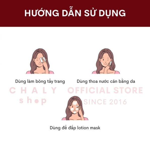 – Mục đích sử dụng: Tẩy trang, thoa nước hoa hồng, đắp lotion mask