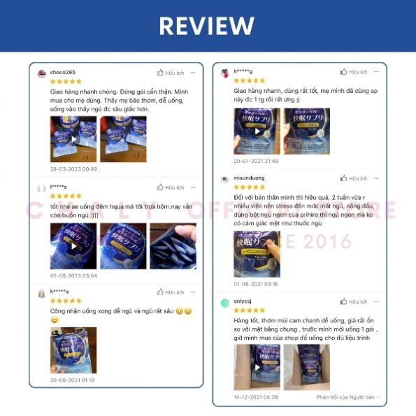 “Thuốc trị mất ngủ Nhật Bản của Orihiro là thực fam chức năng mình uống đều đặn hàng ngày. Hiệu quả cải thiện độ sâu của giấc ngủ rất tốt. Ví như trước đây hôm nào công việc có gì còn dang dở, hoặc con cái hư hay gì là mình hay đem lên giường, nằm mà cứ suy nghĩ trằn trọc, kết quả chẳng thể nào ngủ yên được