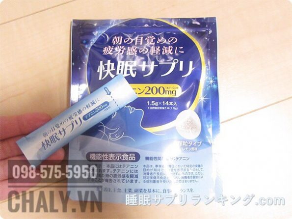 Bột bổ thần kinh của Nhật chứa 200mg theanine mỗi gói, dạng bột có vị chanh thơm mát dễ uống. Là thực phẩm bổ sung hỗ trợ cải thiên mất ngủ của Nhật hiệu quả mà không gây hại cho sức khoẻ