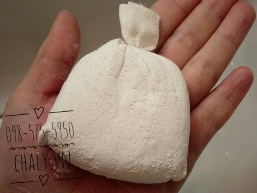 + Nhúng túi bột vào nước ấm và bóp nhẹ nhiều lần tới khi lớp bột bên ngoài cùng trôi ra hết và túi cám gạo đanh lại thành giống như cục bột hơi dẻo dẻo