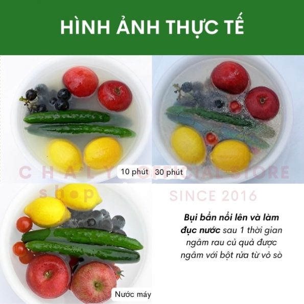 – Kết quả là rau củ quả đảm bảo gần như sạch tuyệt đối, mà độ tươi mát của trái cây rau củ quả không bị ảnh hưởng vì bạn cũng không vày vò thực phẩm với lực quá mạnh tay