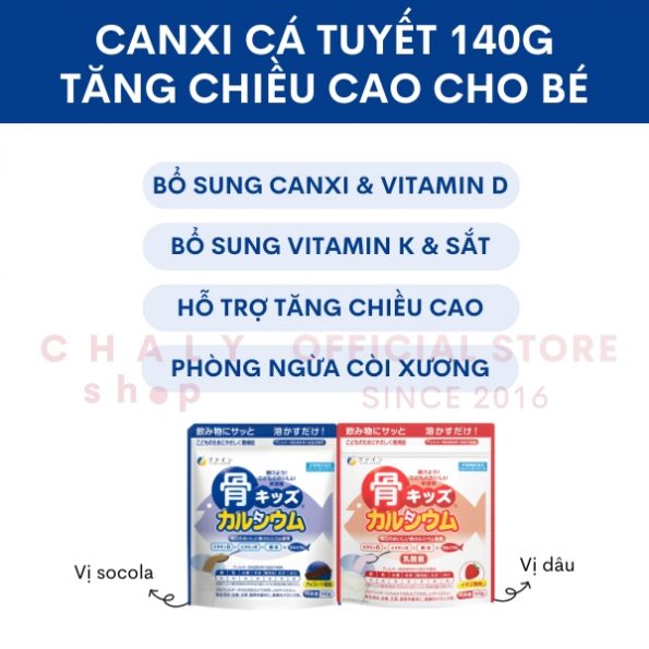 Canxi cá tuyết trẻ em tại Chaly là sản phẩm chính hãng, đủ tem phụ hoá đơn. Quý khách có nhu cầu mua sỉ canxi cá tuyết Fine JP vui lòng liên hệ trực tiếp