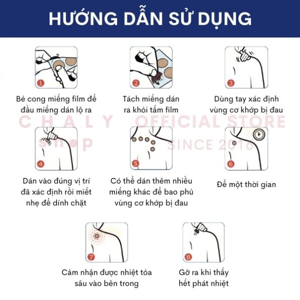 – Bước 8: Gỡ miếng dán khi nào hết cảm thấy nhiệt phát ra. Nên gỡ miếng dán 30 phút trước khi tắm