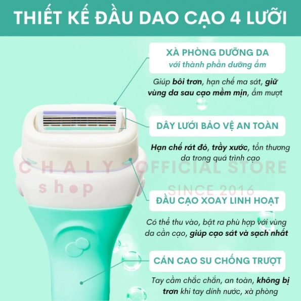 – Sử dụng rất dễ dàng với thiết kế dao cạo độc quyền của Schick