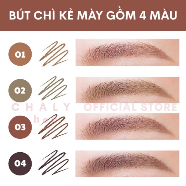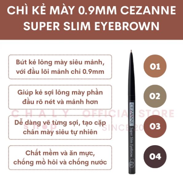Hiện Chaly nhập về 4 màu hot nhất của dòng bút chì kẻ lông mày Cezanne Super Slim Eyebrow gồm màu 01, 02, 03 và 04