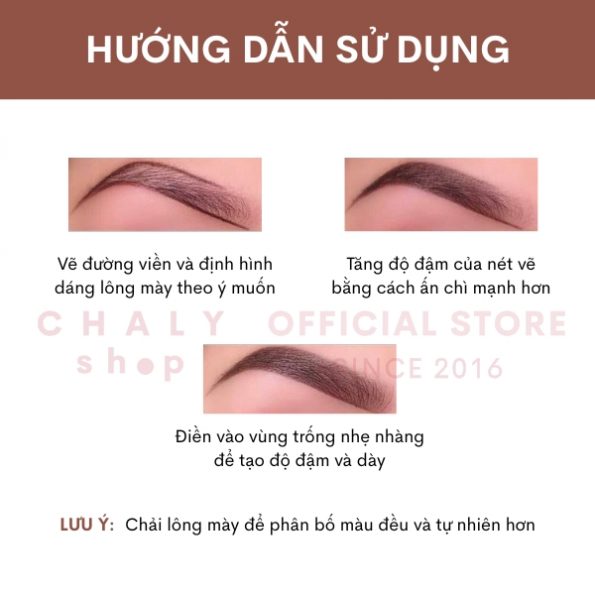 “Cây chì mảnh nhỏ, gọn, nên vặn ít đầu chì thôi không nó gãy. Màu vẽ trông rất tự nhiên. Mình mua màu 03 và 04 nhưng thực ra màu 01 và 02 kẻ lên lông mày trông cũng đẹp lắm. Dễ sử dụng với cả người mới tập kẻ, không trôi với cả mồ hôi và dầu nhờn luôn. Rất đáng để thử”