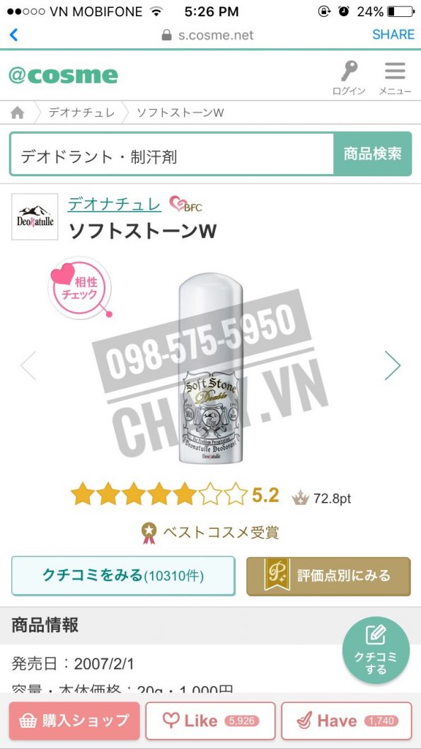– 13 năm liền được bình chọn là khử mùi số 1 trên chuyên trang Cosme.net, lăn nách Soft Stone chắc chắn là thỏi lăn khử mùi tốt nhất cho nữ tại thị trường Nhật nội địa hiện nay