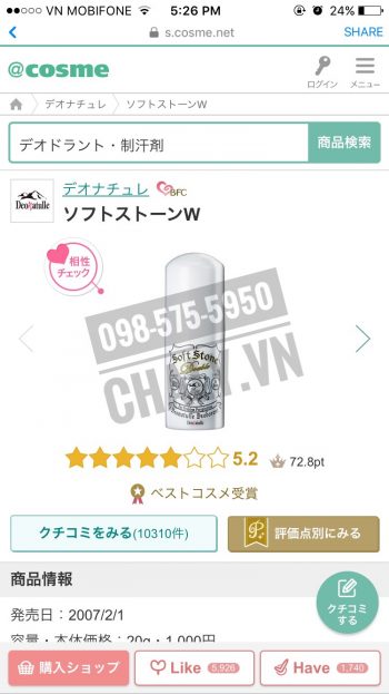 – Cùng với sáp khử mùi Soft Stone, nhiều năm liền người dùng Nhật review đá khoáng khử mùi Crystal Stone nằm trong top khử mùi tốt nhất của Nhật Bản
