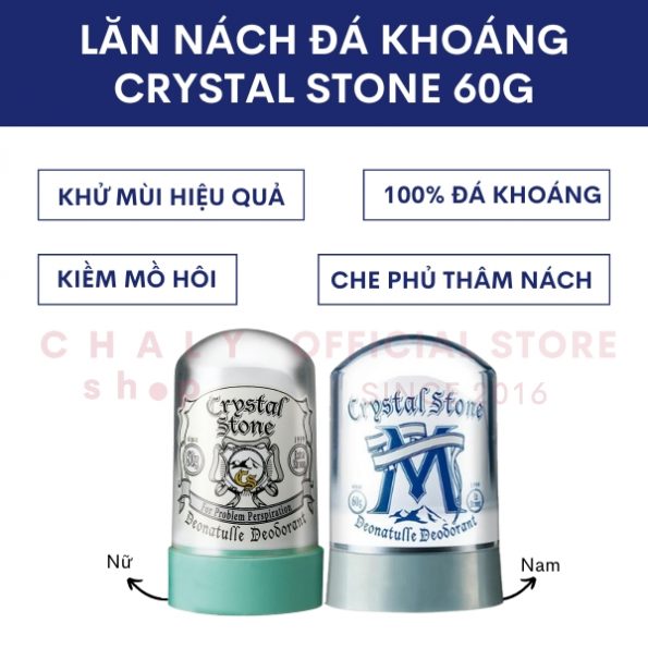 – Crystal Stone màu xanh cho nam giới là dòng được nghiên cứu và thiết kế dành riêng cho đàn ông. Tuy nhiên, sản phẩm không mùi, không màu nên phụ nữ có mùi hôi nách nặng muốn tìm sản phẩm tiêu diệt mùi triệt để cũng có thể sử dụng