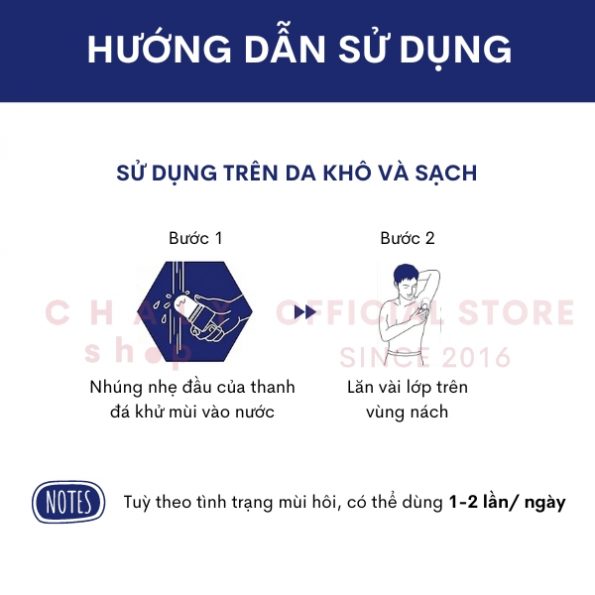 – Vì là dạng đá khô nên thành phần không chứa cồn. Không gây thâm nách hay dị ứng khi dùng. Không bị nhờn dính khó chịu như dùng lăn nách dạng nước thông thường khác