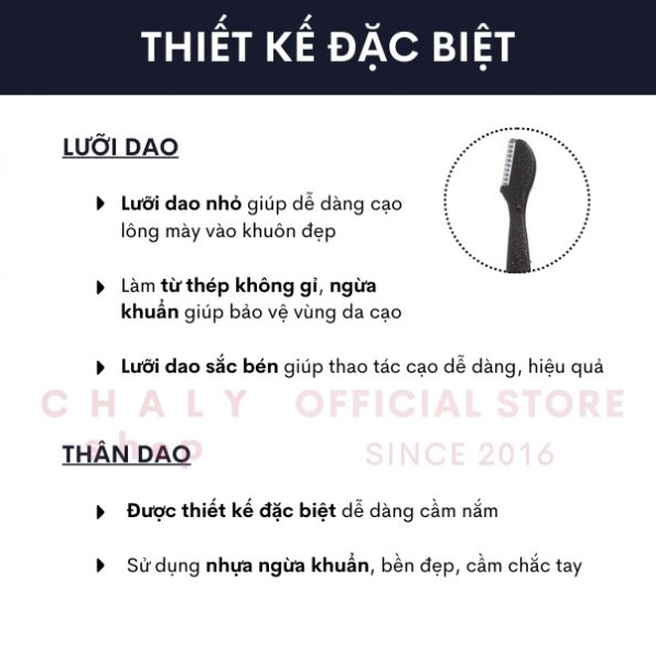 – Lưỡi dao nhỏ với đường cong được thiết kế đặc biệt, giúp dễ dàng cạo lông mày vào khuôn đẹp