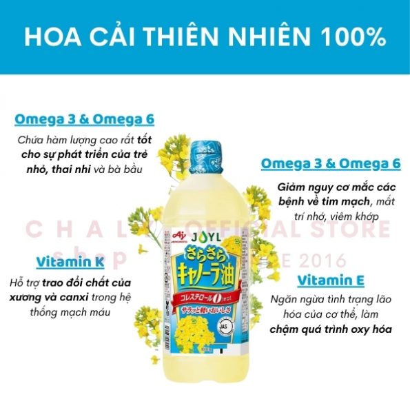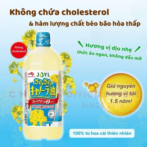 - 2 Dầu ăn hoa cải không cholesterol Ajinomoto JOYL Nhật có tốt không?