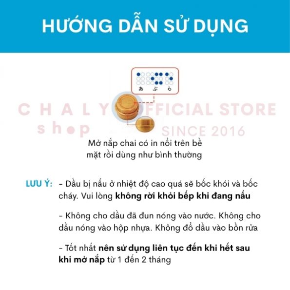 Shop Nhật Chaly cam kết cung cấp sản phẩm dầu ăn chiết xuất 100% hoa cải Ajinomoto JOYL không cholesterol Nhật và nhiều sản phẩm chăm sóc sức khỏe nội địa Nhật chính hãng 100%. Quý khách có thể đặt mua bằng các cách sau
