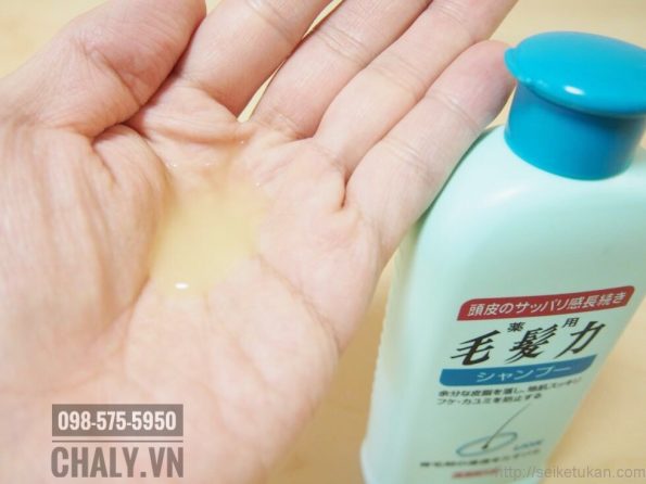 – Lấy lượng dầu gội chống rụng tóc Nhật Bản cần thiết ra tay. Tạo bọt rồi thoa lên tóc