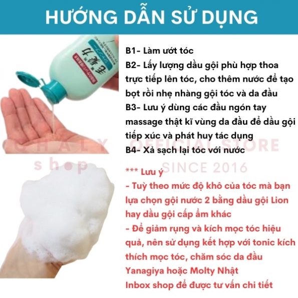 – Nên kết hợp dầu gội ngăn rụng tóc Nhật Bản Lion với xịt kích thích mọc tóc trị hói Molty để tăng hiệu quả kích thích mọc tóc nhanh nhất