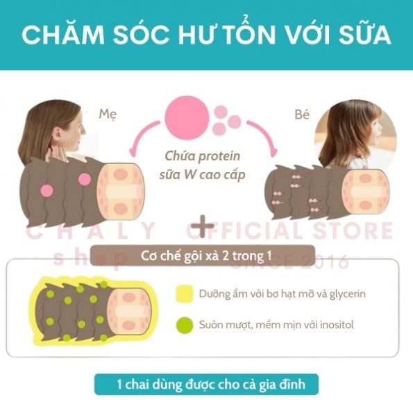 – Giúp chăm sóc tóc và da đầu một cách toàn diện với công thức chứa thành phần dưỡng ẩm cho tóc và da đầu từ Protein sữa (Lactoferrin và sữa lên men)