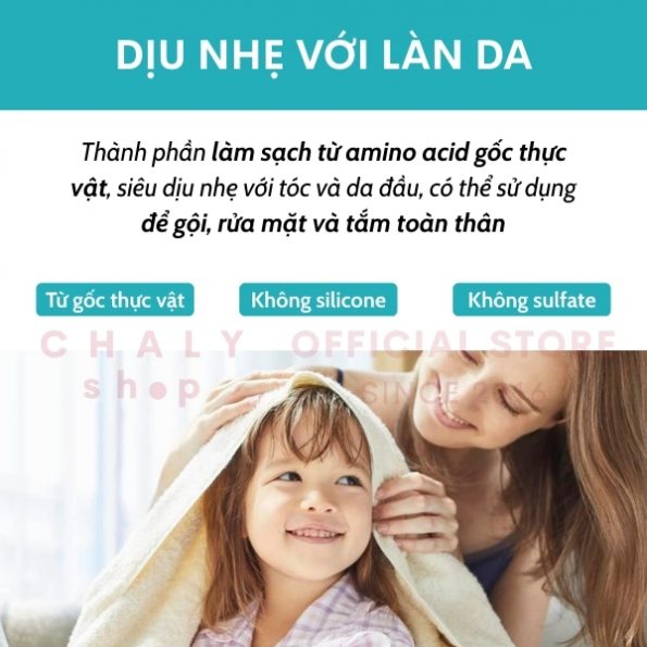 – Là dầu gội kiêm dầu xả (2 trong 1) cho cả gia đình, dùng được cho bé từ 2 tuổi, và kể cả người có da đầu nhạy cảm