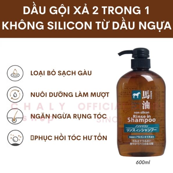 Dầu gội xả 2in1 từ dầu ngựa Kumano Horse Oil Non Silicon Rinse In Shampoo 600ml Nhật