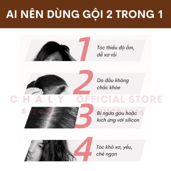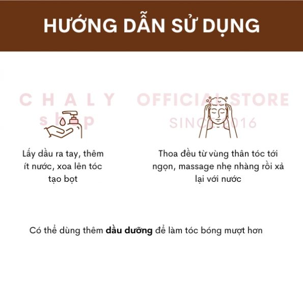 – Mục đích sử dụng: Gội xả tóc 2 trong 1, dầu gội không silicon