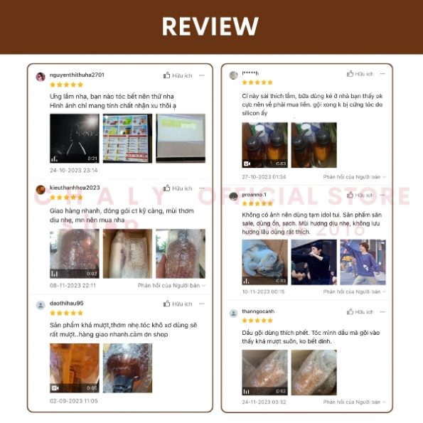 “Mình đã xài qua vài lần và cảm nhận là dầu gội này gội rất sạch, không làm da đầu bị khô, còn kết hợp xả luôn nên tóc mềm mượt hơn hẳn sau khi dùng. Trước đây tóc mình khô, xơ lắm mà giờ đã cải thiện nhiều. Mùi thơm nhẹ nhàng, không quá nồng, rất dễ chịu. Chắc chắn sẽ ủng hộ shop dài dài.”