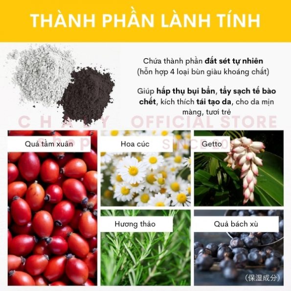 – Dầu tẩy trang Claypathy dịu nhẹ, chứa đến 7 loại chiết xuất dầu thực vật giàu vitamin E, 6 loại thảo dược giàu vitamin C, 9 loại tinh dầu tự nhiên, kết hợp cùng 4 loại bùn giàu khoáng chất cần thiết cho da