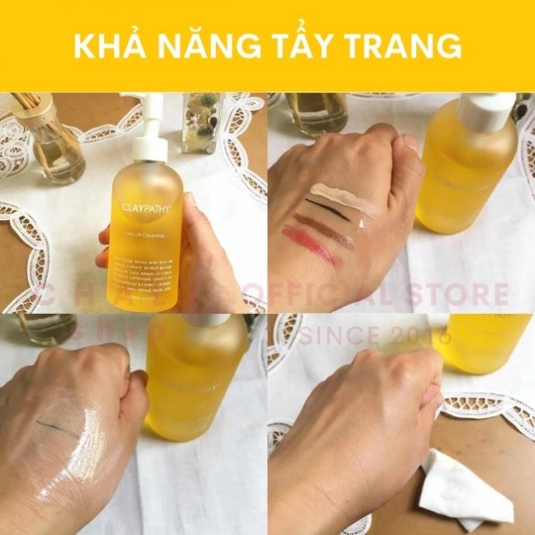 Dầu tẩy trang Claypathy dịu nhẹ, chứa đến 7 loại chiết xuất dầu thực vật giàu vitamin E, 6 loại thảo dược giàu vitamin C, 9 loại tinh dầu tự nhiên, kết hợp cùng 4 loại bùn giàu khoáng chất cần thiết cho da