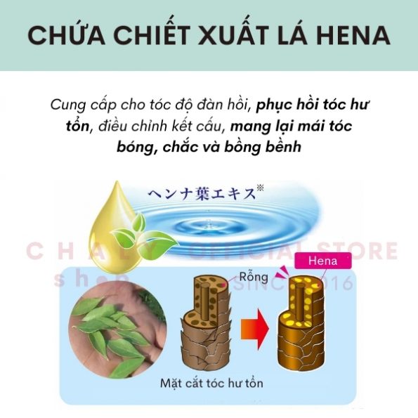 – Dầu xả nhuộm tóc phủ bạc thảo dược Hena Nhật Bản là một trong số những sản phẩm thành công nhất trong việc sử dụng chiết xuất henna vào chăm sóc nuôi dưỡng tóc với nhiều công dụng được biết đến như: