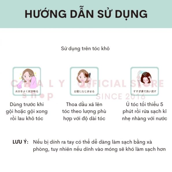 – Thoa dầu xả lên tóc theo lượng được nhà sản xuất khuyến khích