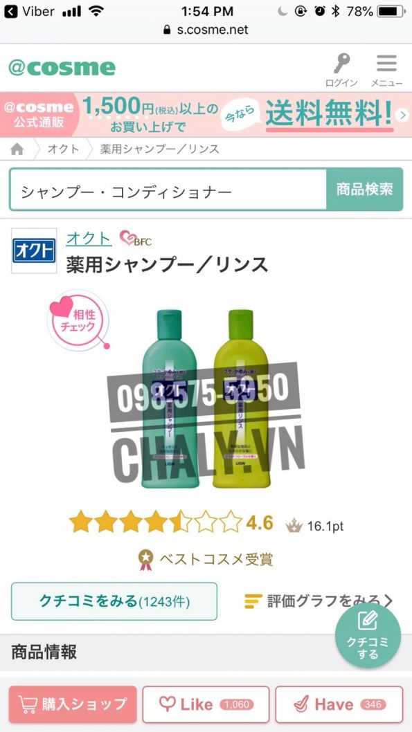 – 3 năm liền, set dầu gội đặc trị gàu của Nhật Okuto đứng vị trí số 1 Cosme trong danh mục dầu gội trị gàu Nhật Bản tốt nhất
