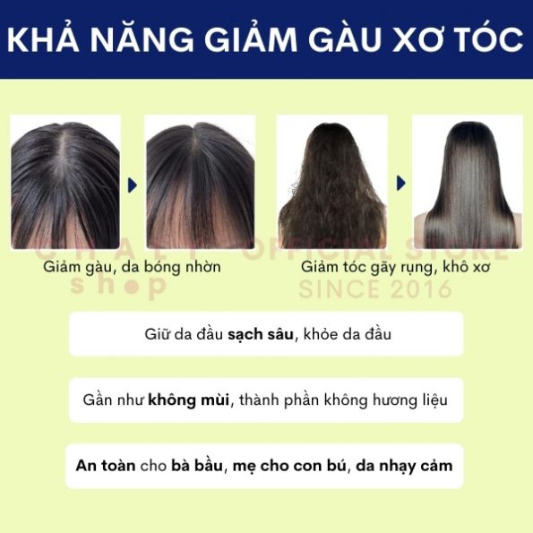 + Đặc trị tốt tình trạng gàu da đầu. Hiệu quả trị gàu thấy ngay chỉ sau khoảng 1-2 tuần sử dụng