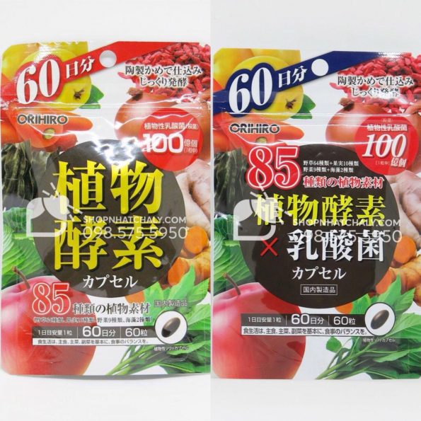 – Viên enzyme rau củ của Orihiro: Chiết xuất từ 85 loại rau củ quả khác nhau. Rau củ được xử lý theo công nghệ riêng, chiết ra dạng enzyme tiêu hoá, dễ dàng được cơ thể hấp thụ. Ngoài ra còn có thành phần men vi sinh tiêu hoá