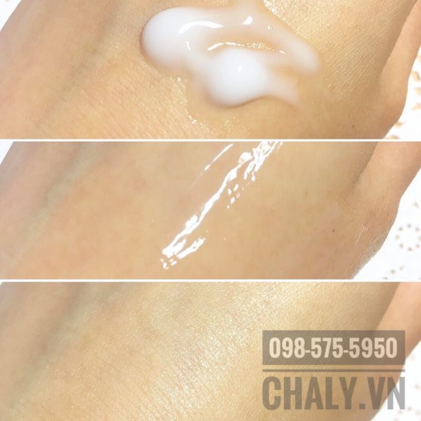 – Texture dạng lai gel cực kỳ lỏng, mịn, thẩm thấu rất nhanh và không hề gây bí rích