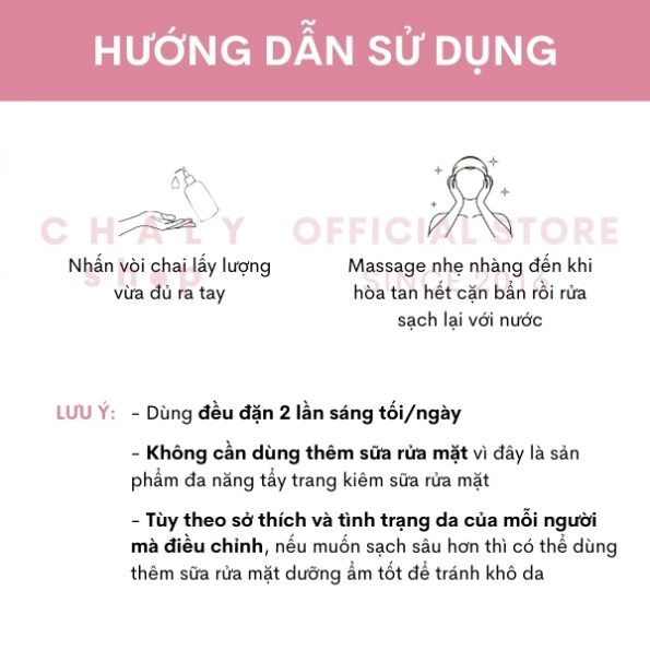 – Không cần dùng thêm SRM vì đây là sản phẩm tẩy trang kiêm sữa rửa mặt