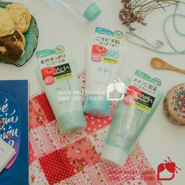 – Dòng mỹ phẩm AHA của Nhật bao gồm các sản phẩm tẩy trang, sữa rửa mặt mang trong mình thành phần AHA độc đáo từ trái cây thiên nhiên