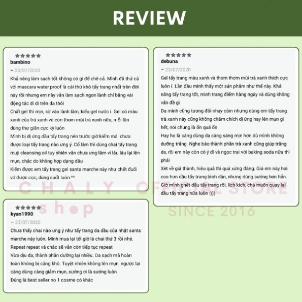– Do đó Santa Marche green tea cleansing được review là tẩy trang Nhật an toàn cho da nhạy cảm
