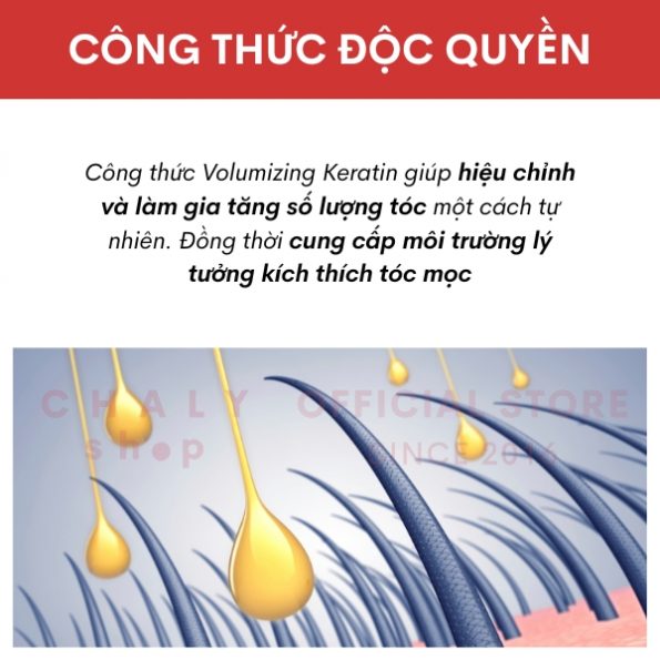 – Công thức độc quyền Volumizing Keratin giúp hiệu chỉnh và làm gia tăng số lượng tóc một cách tự nhiên. Đồng thời, làm mịn và đầy sợi tóc từ gốc, giúp tóc phẳng, mềm dễ dàng tạo kiểu