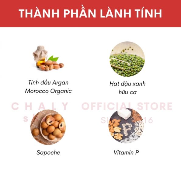 – Thành phần từ tinh dầu thiên nhiên gồm Argan Morocco, Biotin, vitamin P, tinh dầu hạt đậu xanh organic