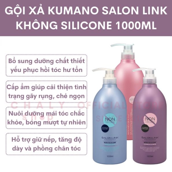 Gội xả Kumano Salon Link phục hồi không chứa silicone 1000ml Nhật Bản