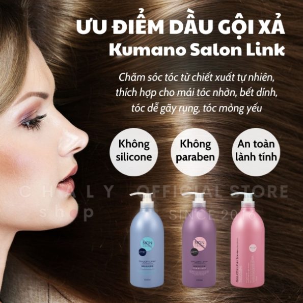 – Set gội xả Salon Link thuộc thương hiệu KUMANO, một thương hiệu nổi tiếng ở Nhật Bản chuyên về sản phẩm chăm sóc da và tóc chiết xuất tự nhiên