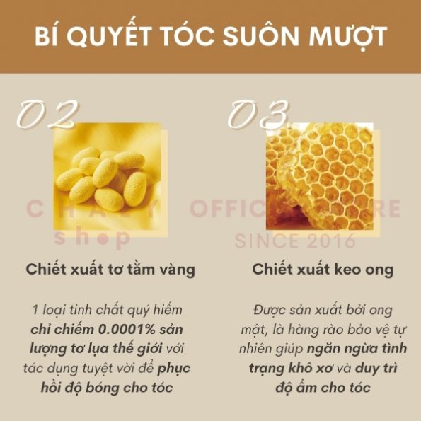 – Với công thức “golden silk” có thể tạo hiệu ứng óng mượt mà không cần là hay duỗi tóc
