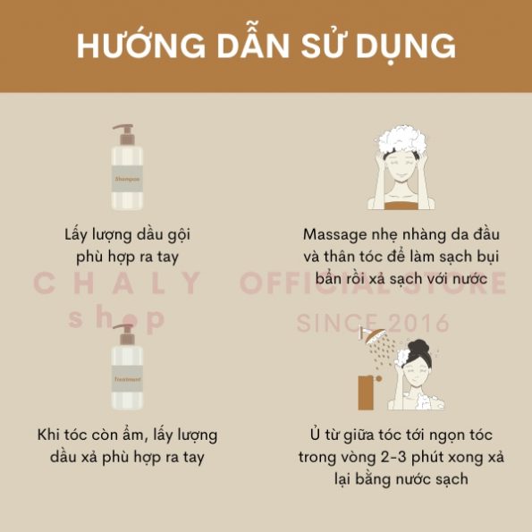 – Dùng 1 lượng thích hợp dầu gội thoa lên tóc ướt, massage nhẹ nhàng da đầu và thân tóc để làm sạch bụi bẩn rồi xả sạch với nước