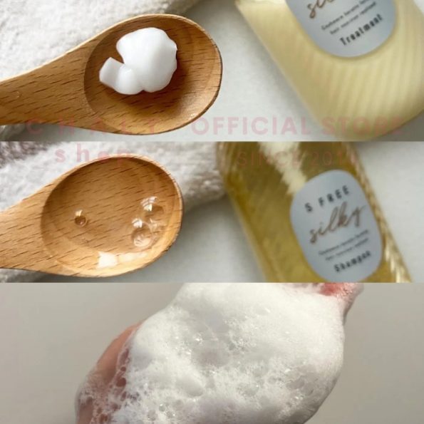 Với thành phần chiết xuất cashmere tạo ra keratin thủy phân có kích thước siêu nhỏ dễ thẩm thấu sâu vào thân tóc, set gội xả S Free Silky Smooth Nhật giúp mái tóc suôn mượt chắc khỏe, cùng chiết xuất tơ tằm vàng và chiết xuất keo ong giúp cấp ẩm cho sợi tóc, tạo thành lớp màng bảo vệ sợi tóc khỏi tác động có hại từ môi trường